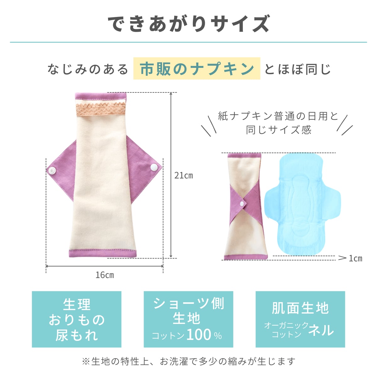 布ナプキン 作り方 手作り キット 簡単 ライナー おりもの用 防水シート 生理用 ホルダー ネル生地 オーガニックコットン 更年期 尿もれ 小学生自由研究 節約 経済的 agio布ナプキン おりものライナー専門店 agio。