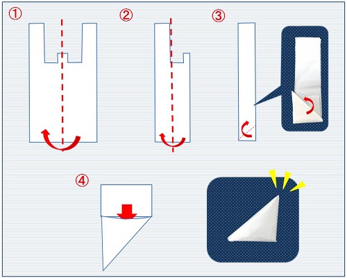ハンカチタイプ布ナプキンの基本的な使い方と折り方。