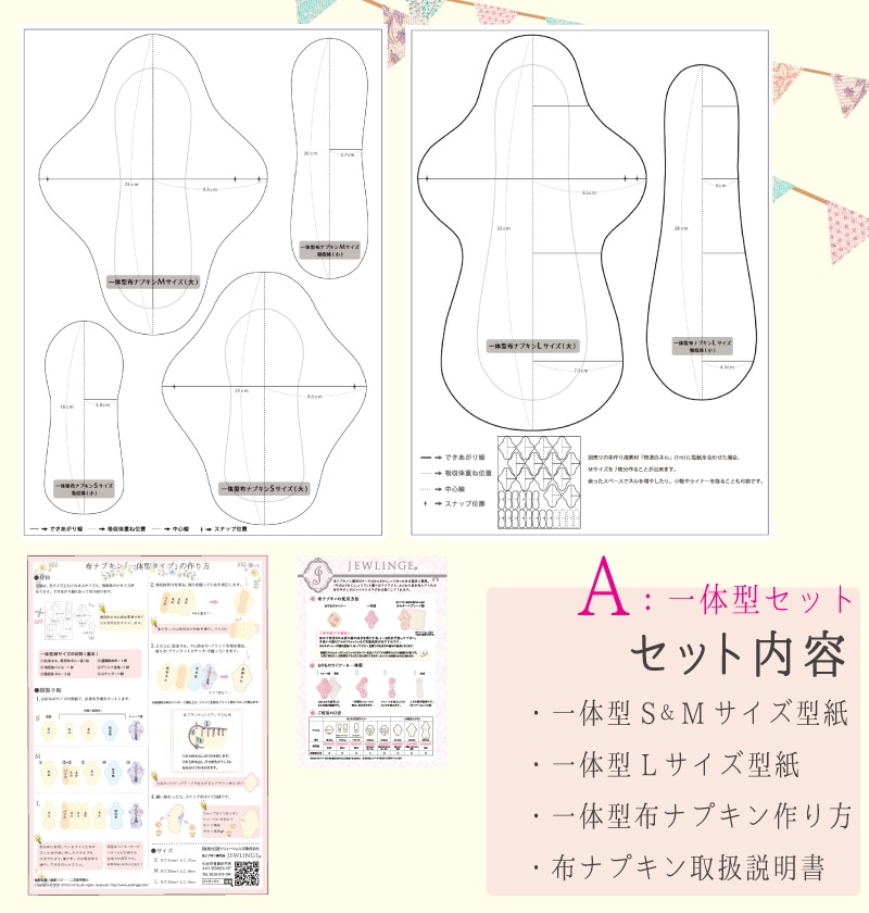JEWLINGE ジュランジェ布ナプキン型紙一体型 プレーンから選べる布ナプキン手作り型紙 布ナプキン手作り用素材 ハンドメイド 商用利用可布ナプキン&リラックスショーツ専門店 ジュランジェ。