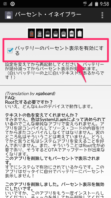 Android スマホのバッテリー残量 電池残量 をパーセントで表示する方法は。