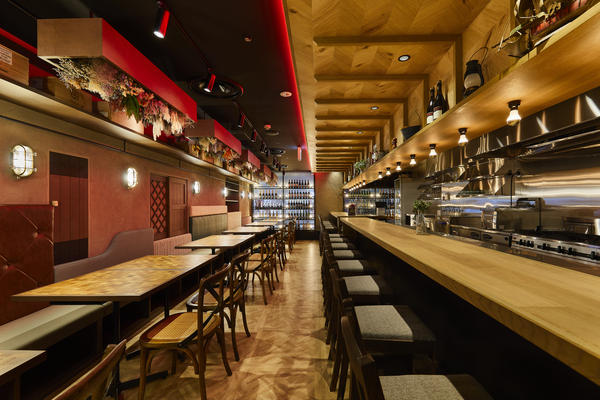 イタリアンレストラン内装デザイン シェフのプライベートキッチンのような空間内装工事、店舗デザイン・設計の見積もり依頼・比較 アーキクラウド。