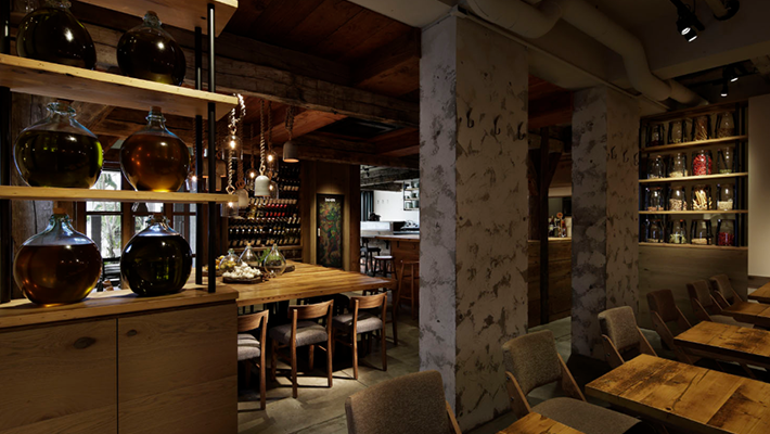 イタリアンレストラン内装デザインイタリアンレストラン「TRATTORIA ISSEI」 施工事例 -建材メーカー キャン'エンタープライゼズ。