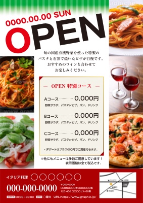 イタリアンレストランOPENチラシ飲食店のチラシデザイン作成・印刷なら飲食チラシ制作.com。