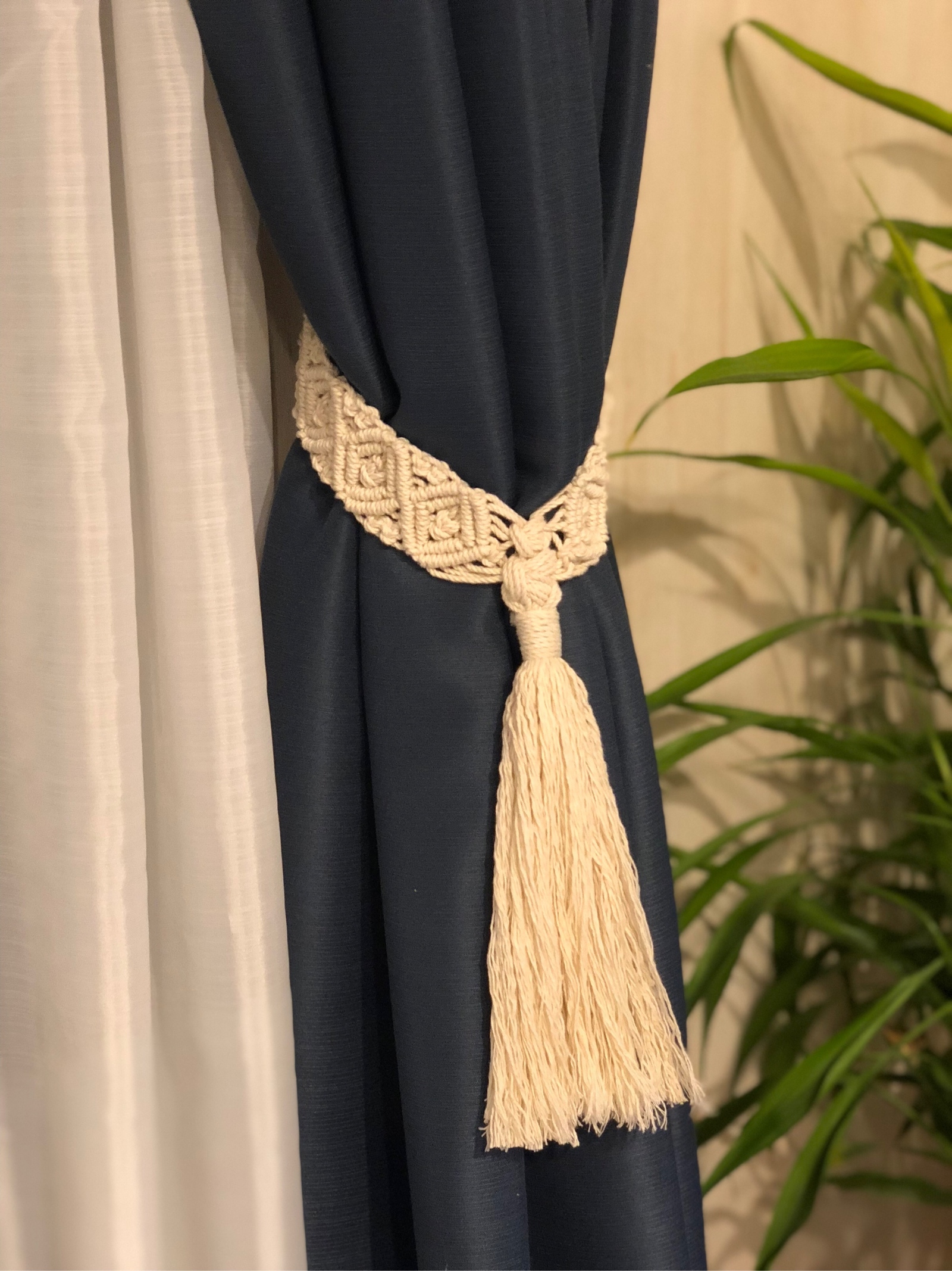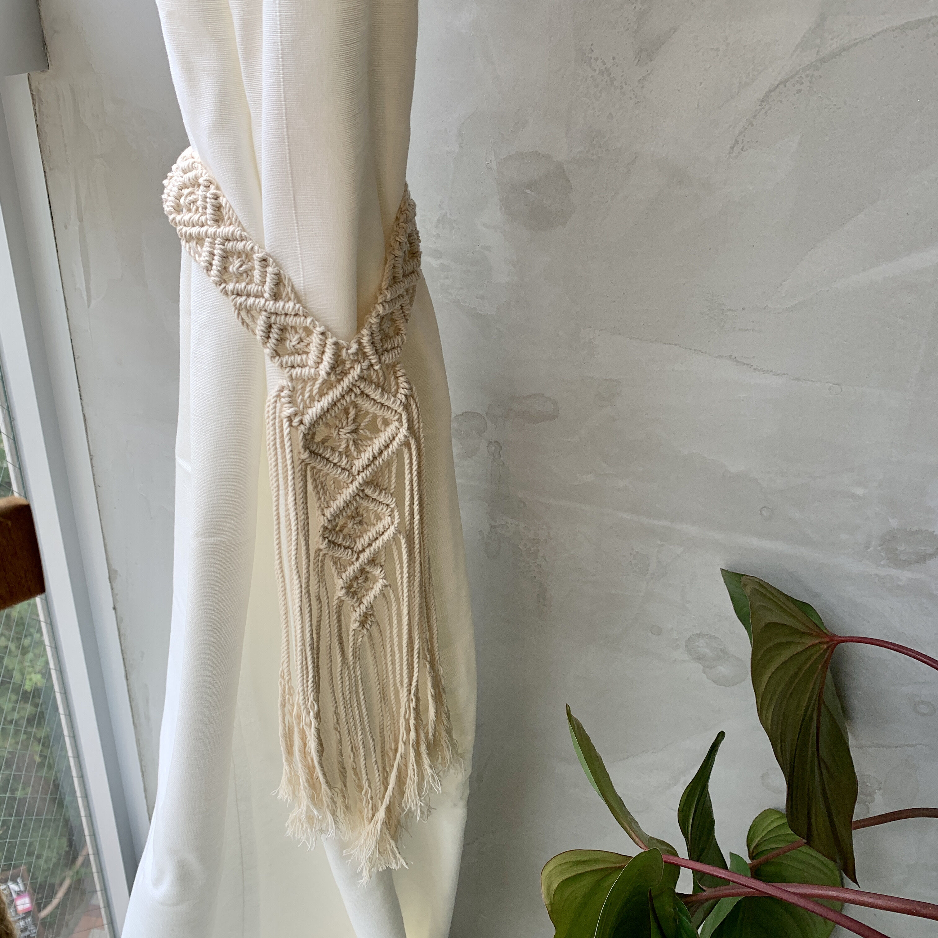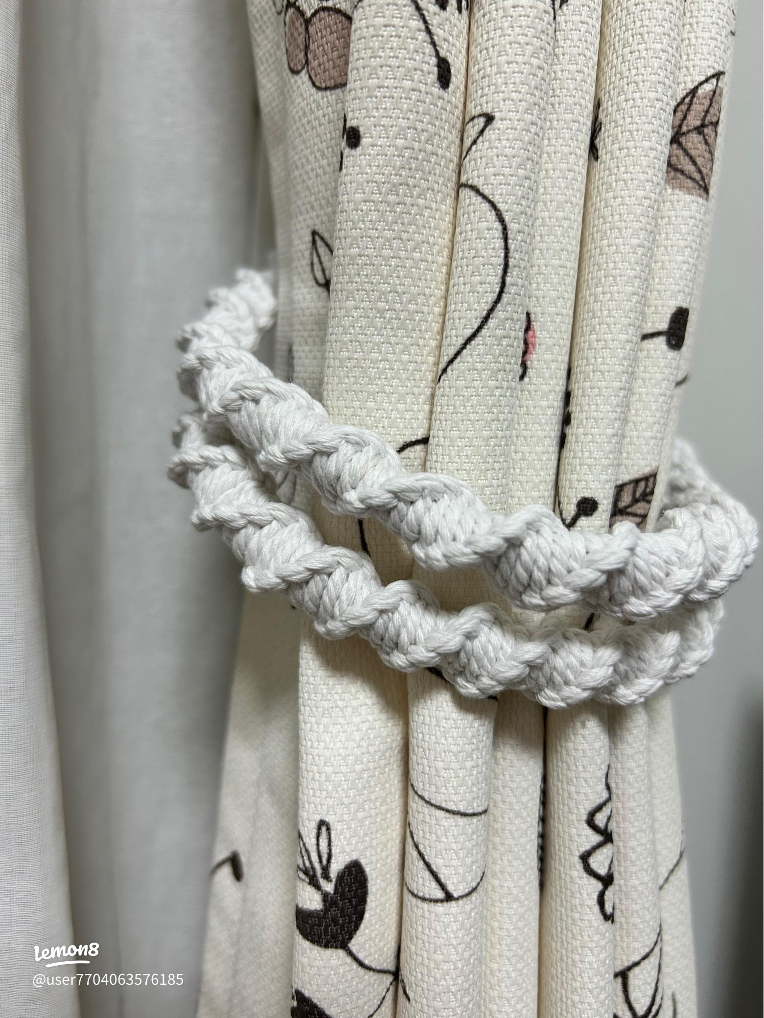 ハンドメイドマクラメカーテンタイバックコットン織カーテンタイバックストラップタッセルハンギングボールホームデコカーテンアクセサリーDIY部屋が少しオシャレになるマクラメ編みのカーテンタッセル☺︎ macrame curtain tie backs tutorial。