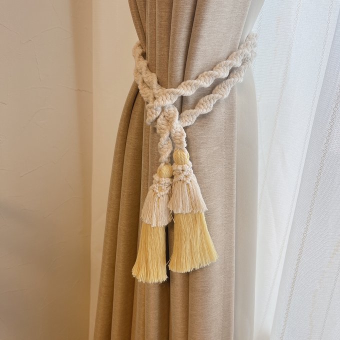 ○イエロー○ 2個セット マクラメカーテンタッセル カーテン留め - macrame indigominne byGMOペパボ国内最大級のハンドメイド・手作り通販サイト。