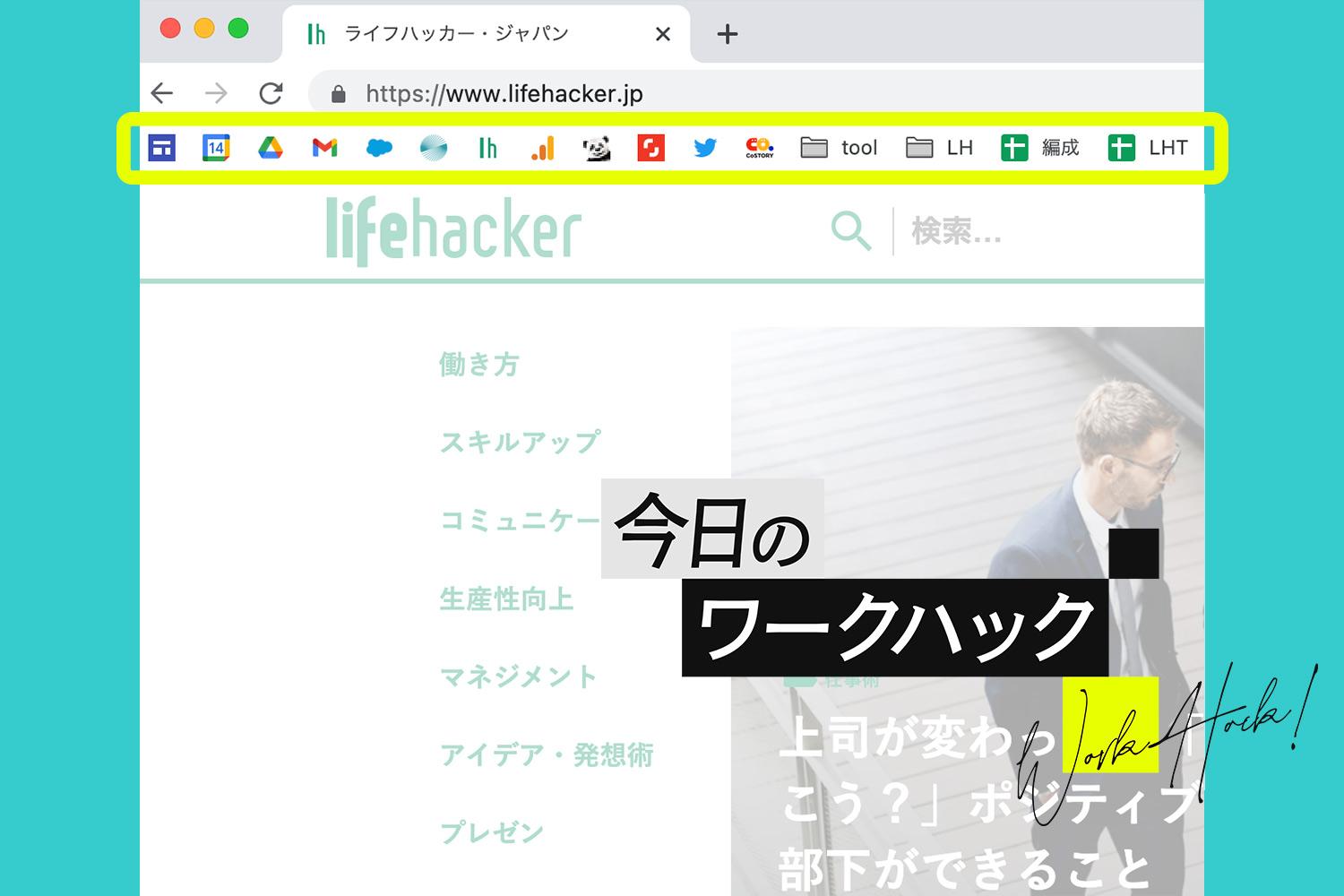 Google Chromeブックマークバーはアイコンだけにして効率化!見せられるブラウザに 今日のワークハックライフハッカー・ジャパン。