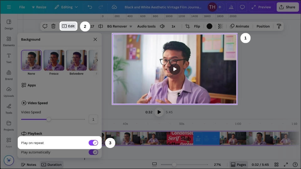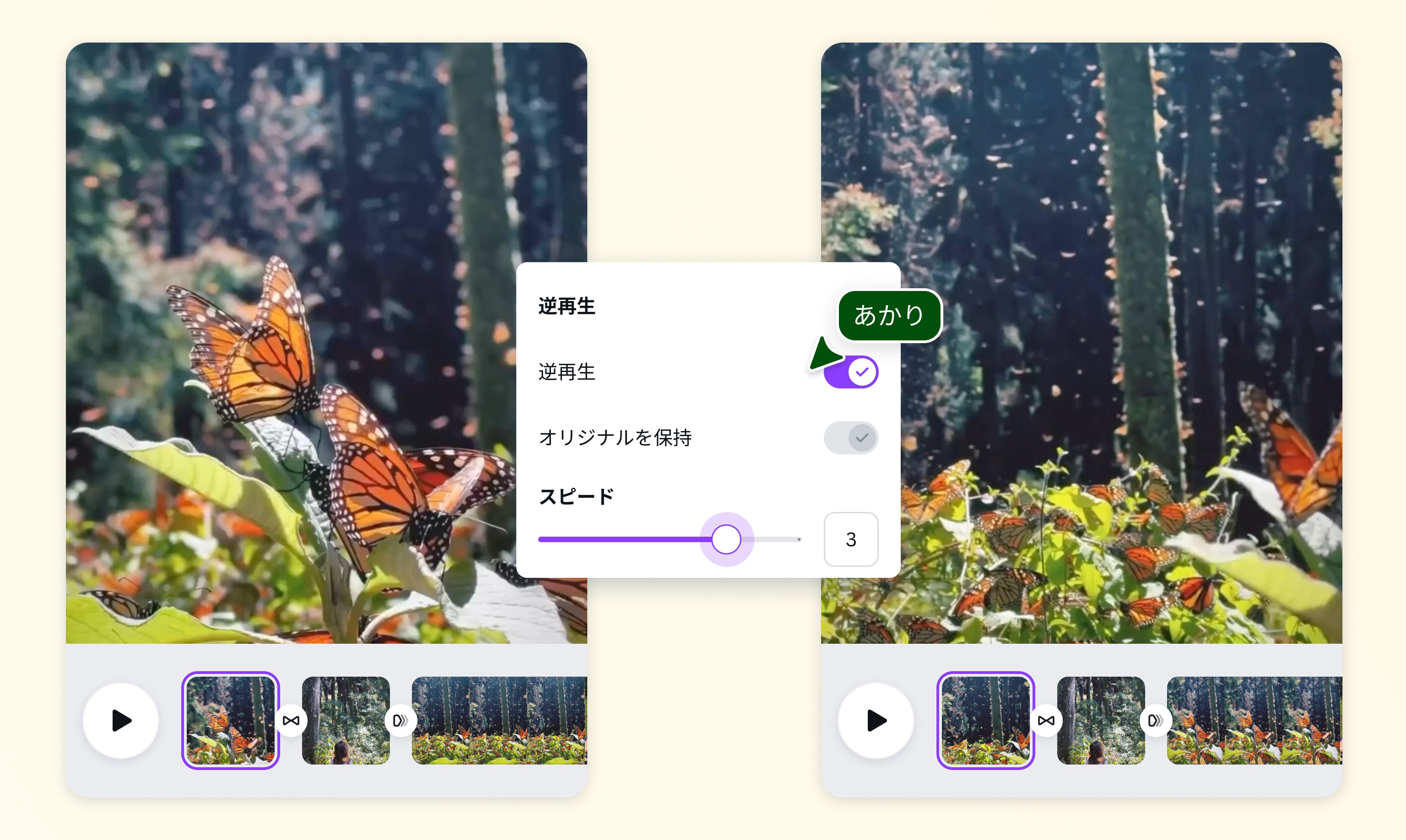 動画の再生を調整する:自動再生、ループ再生、速度再生 - Canvaヘルプセンタ。