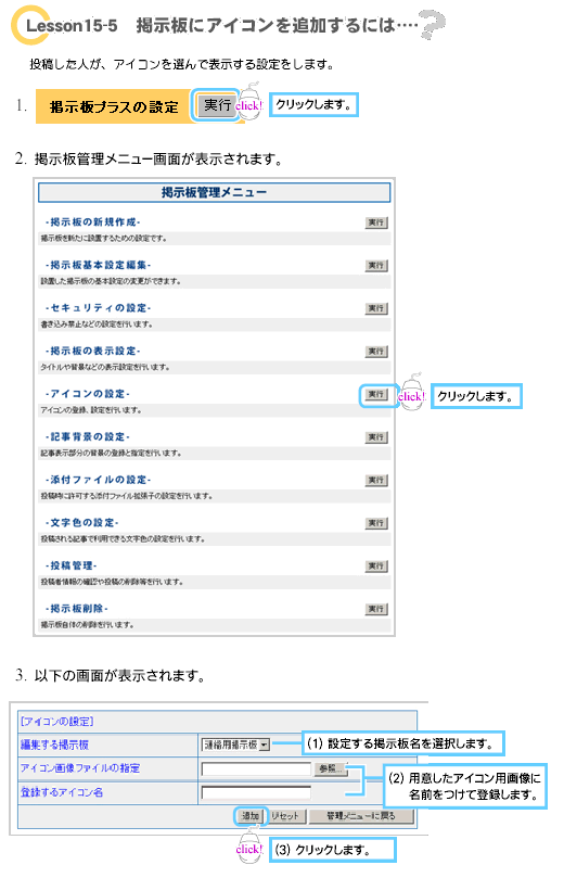掲示板にアイコンを追加するには ASJホスティングサービス - ユーザーズマニュアル。