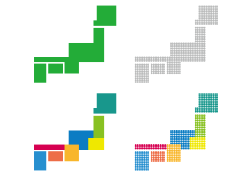 日本地図のドットイラスト画像<地方区分色分け> - 日本地図無料イラスト素材集。