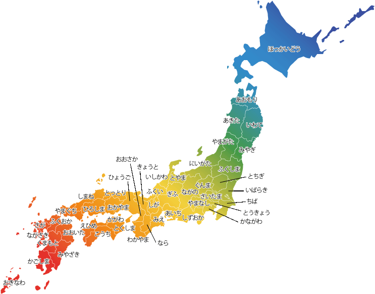かわいい虹彩おしゃれな日本地図イラスト・フリー素材なら「シンテリ」。