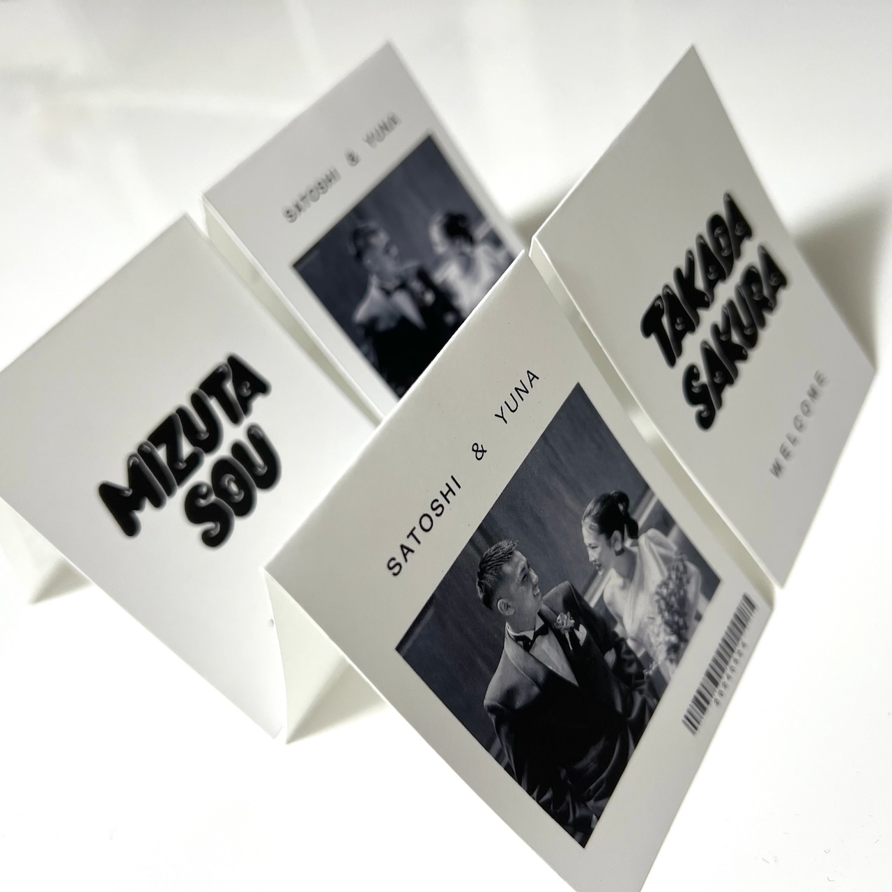 ポパイ風♡ゲストごとに写真を変えられるフォト付き席札。