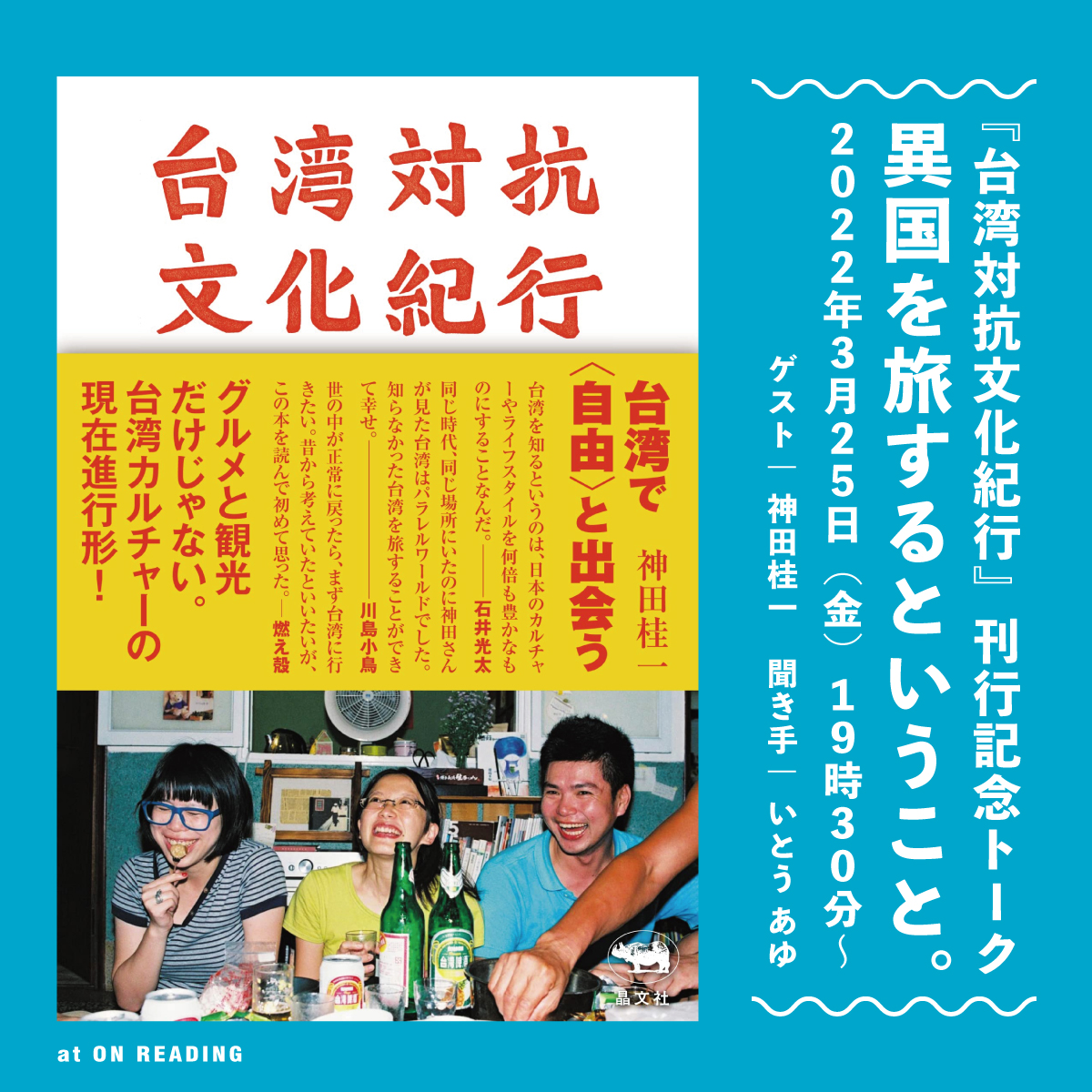 POPEYE』『スペクテイター』などカルチャー誌を中心に活躍中のライター・神田桂一による紀行ノンフィクション『台湾対抗文化紀行』 晶文社の刊行記念トークイベントがON READINGにて開催!LIVERARY – A Magazine for Local Living。