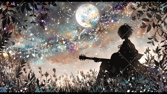 月夜のススキの9月イラストのフリー素材イラストイメージ。