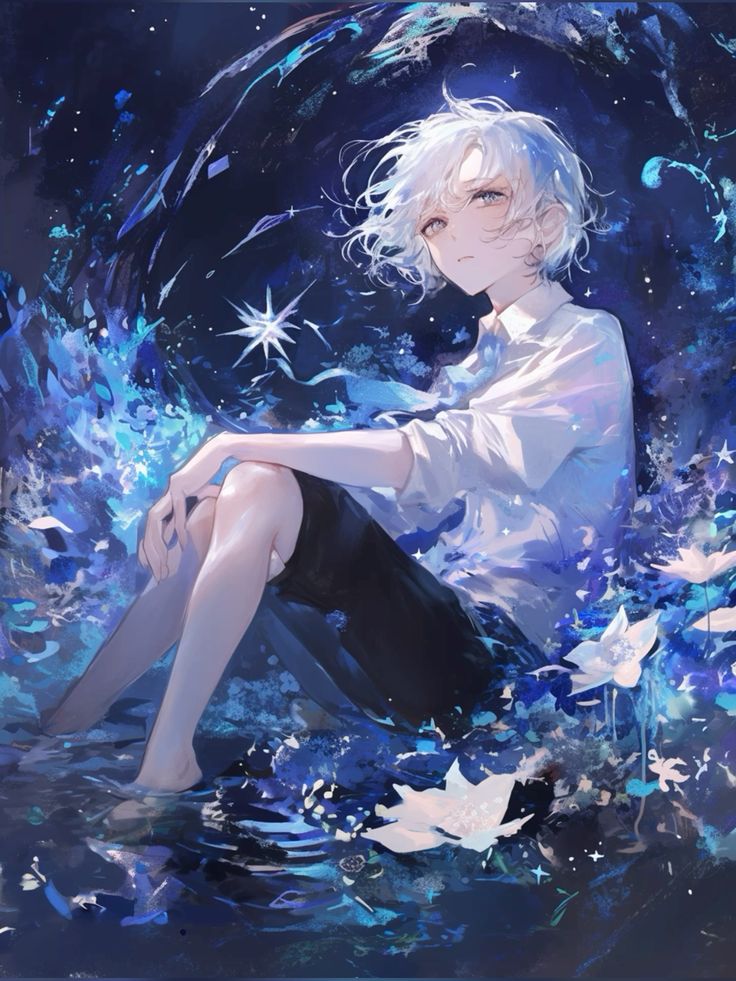 男男の子イラストアイコン白髪水海夜月夜月水飛沫飛沫イケメンかっこいい可愛いかわいい神秘的綺麗星。