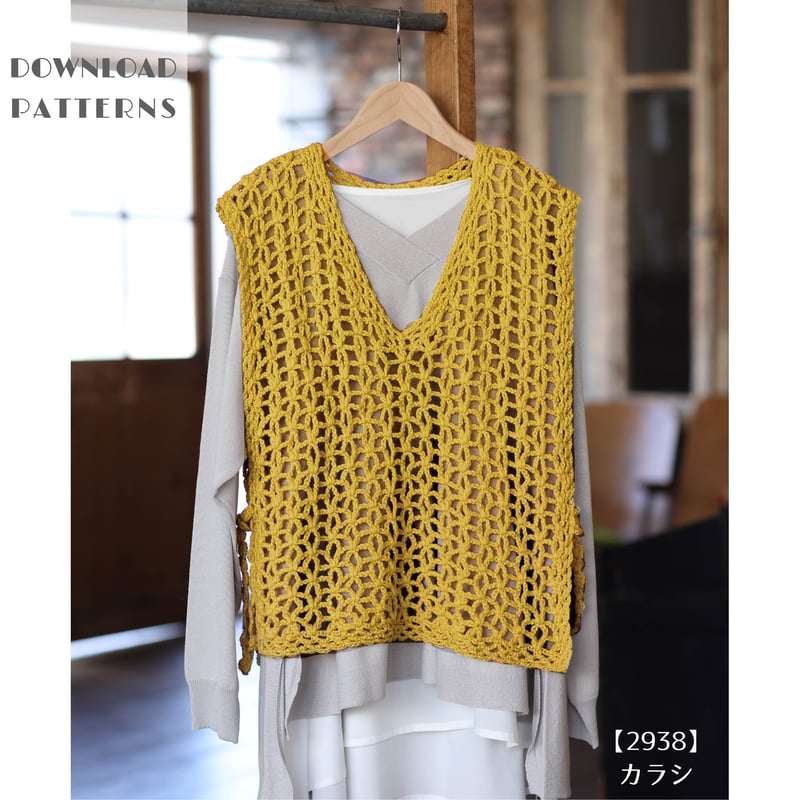 2A10424 かぎ針編みの四角いベスト 編み図ダウンロードニッケビクターオンラインショップ。