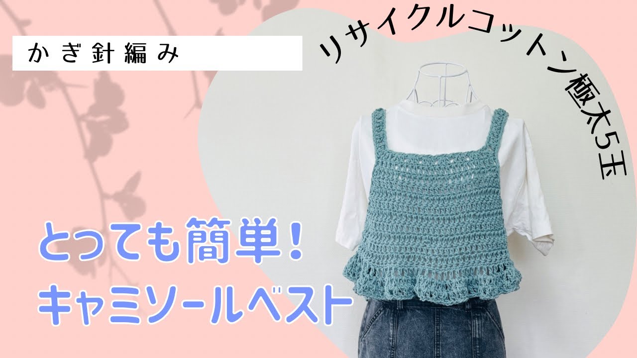 かぎ針編み 鎖編みベスト 初心者さん用に編みました 経験者さんならテレビ見ながらでも編める超簡単ベストです 編み方はYouTubeをご覧くださいかぎ針編み編み物初心者簡単編み物ニットトップスダイソー毛糸ウールブレンド鎖編みcrochetvest。