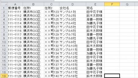 宛名ラベルの書式テンプレート Excel・エクセルテンプレート・フリーBiz。