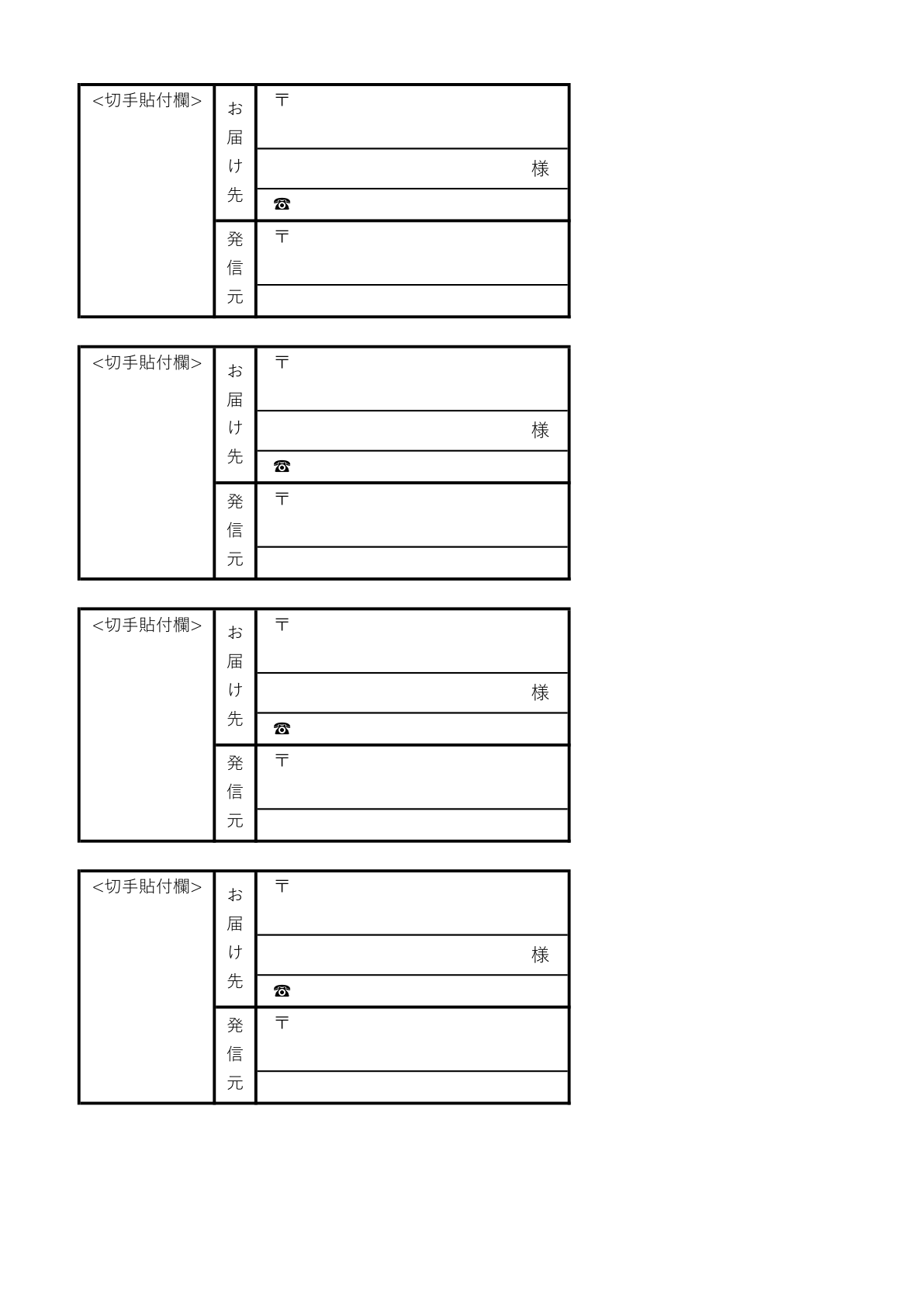 宛名ラベル A4横・4枚 のテンプレート・Word無料のビジネス書式テンプレート。