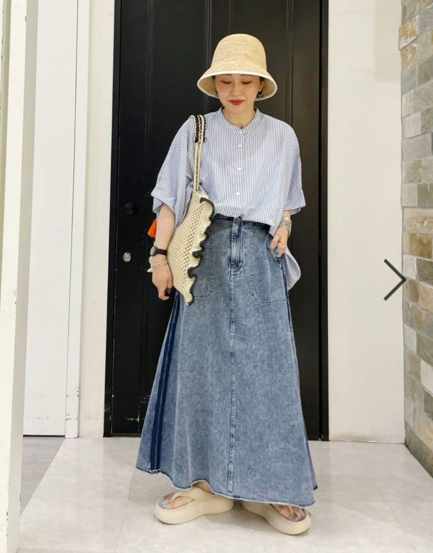 niko andサイドラインデニムスカート サイズL @niko andお洒落も楽しむ夏フェスリンクコーデ👭🏻🎧みんなはどれ好き~? アイテム詳細はインスタのURLから探してみてね🔍nikoandニコアンドニコアンドコーデ夏コーデリンクコーデ夏フェスフェス。
